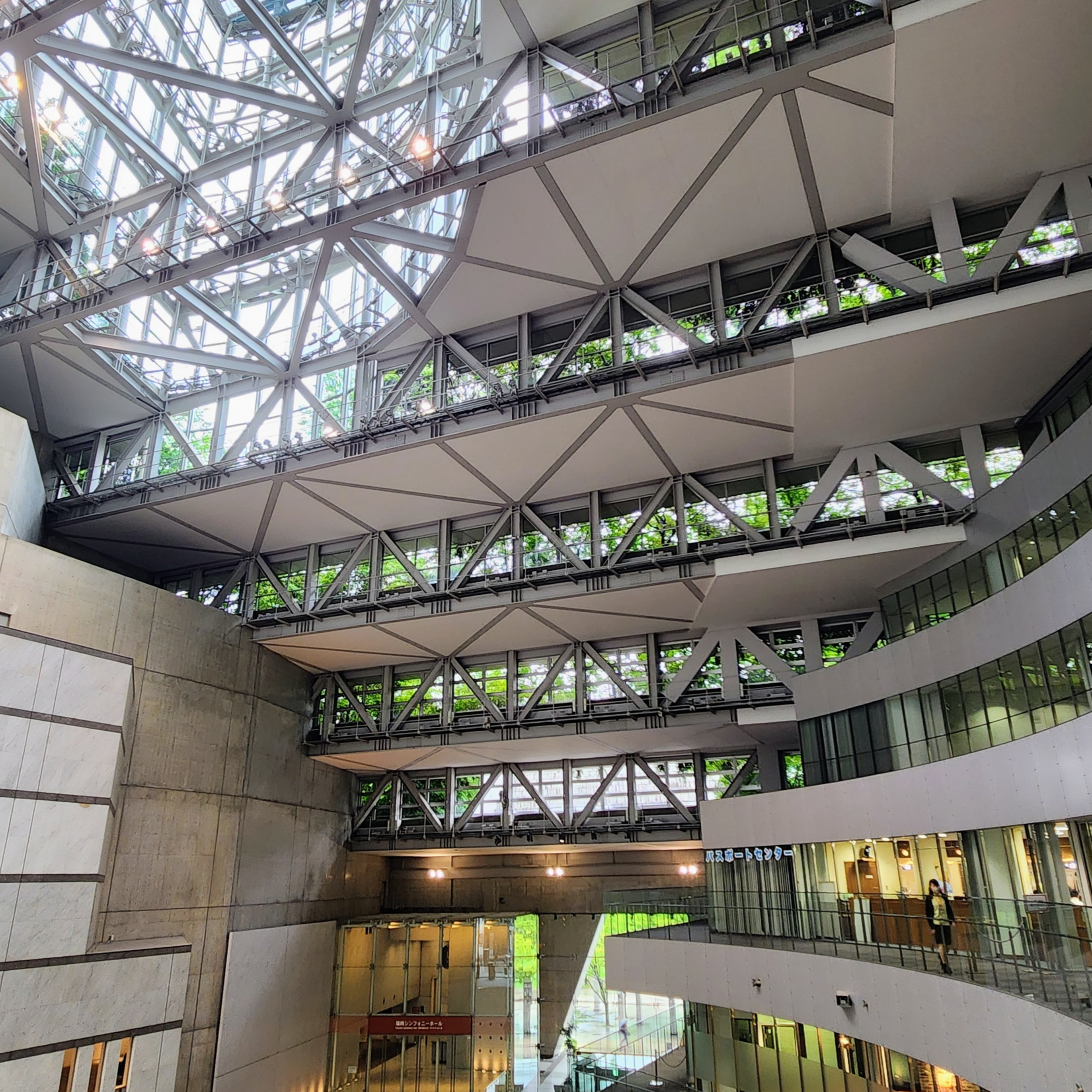 一方、工場団地の一角にある敷地周辺は日本の高度成長期を支えた生産性優先の無機質な空間で、工場の建屋や積み上げられた資材が並ぶ景観は、職場として人への配慮は薄い印象です。