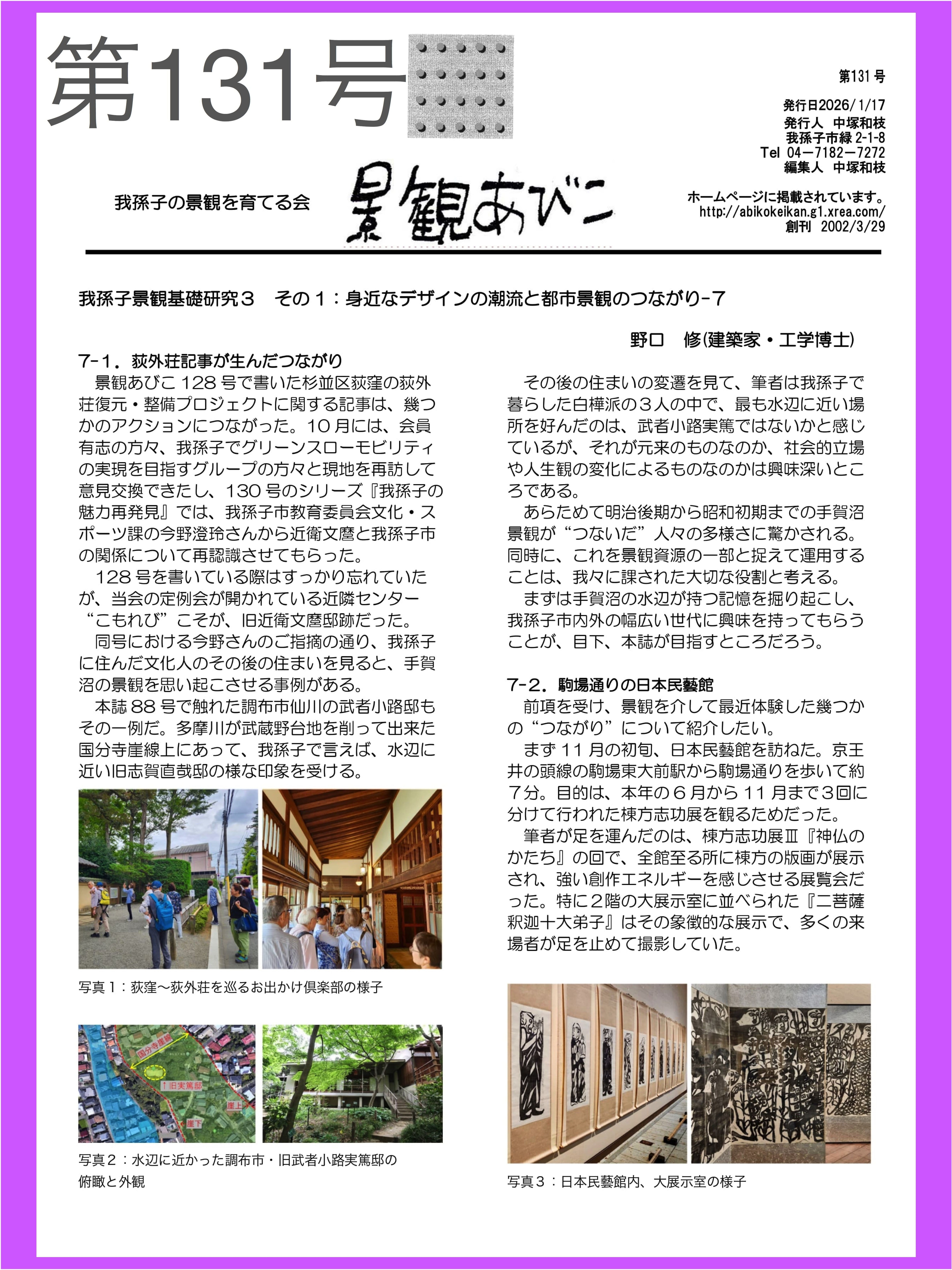 景観あびこ( 我孫子の景観を育てる会 発行 )に