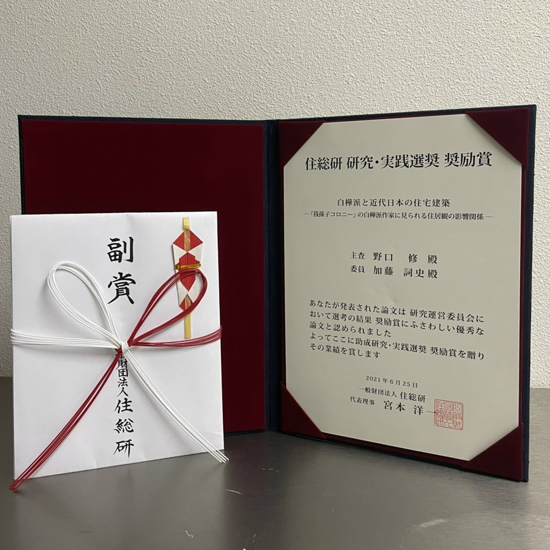 が、第19回 2021年度 「住総研 研究・実践選奨 奨励賞」を受賞しました。
