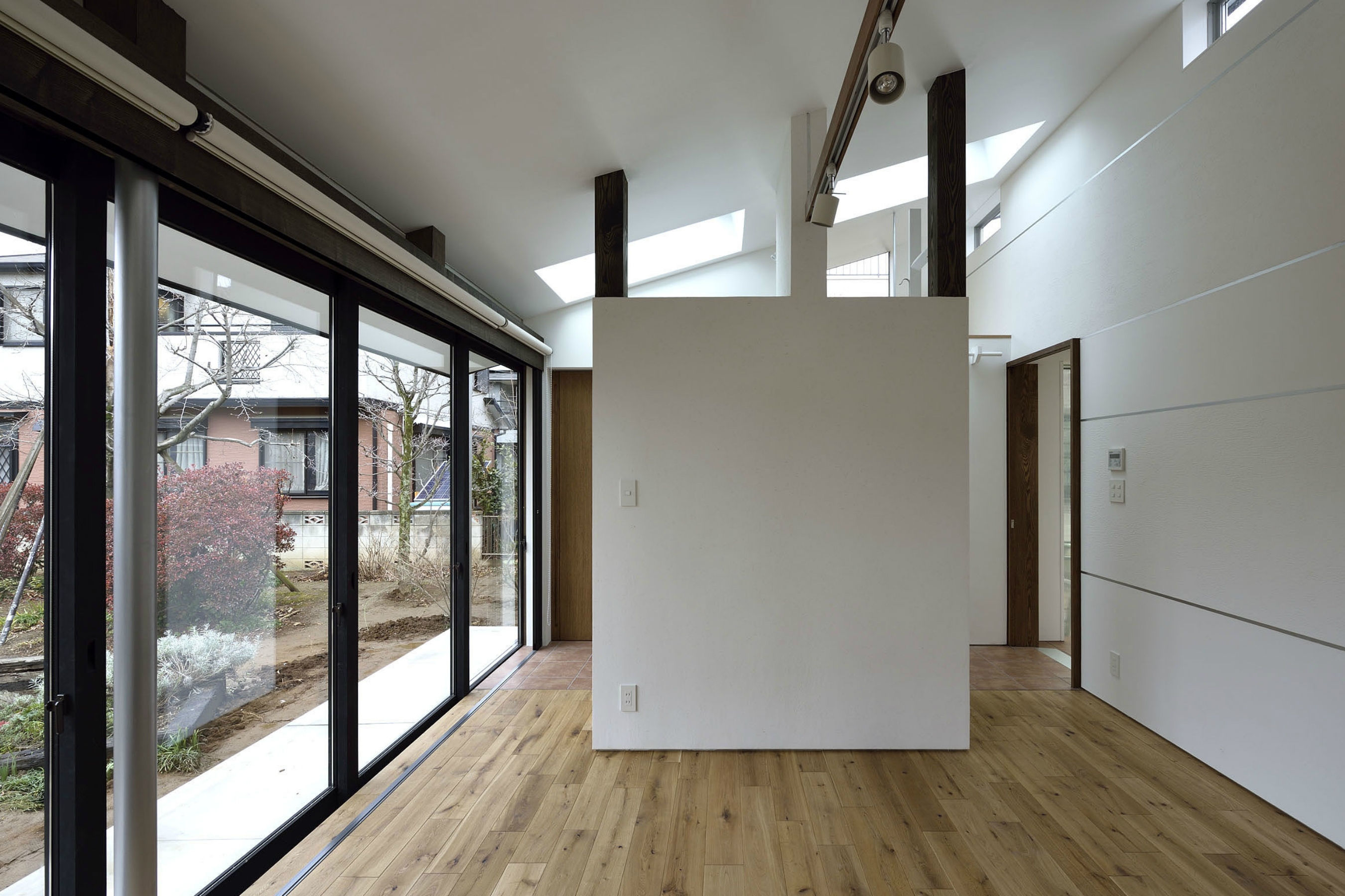 写真上:子世帯のリビングとチャイルドスペースを兼ねたはなれの内観