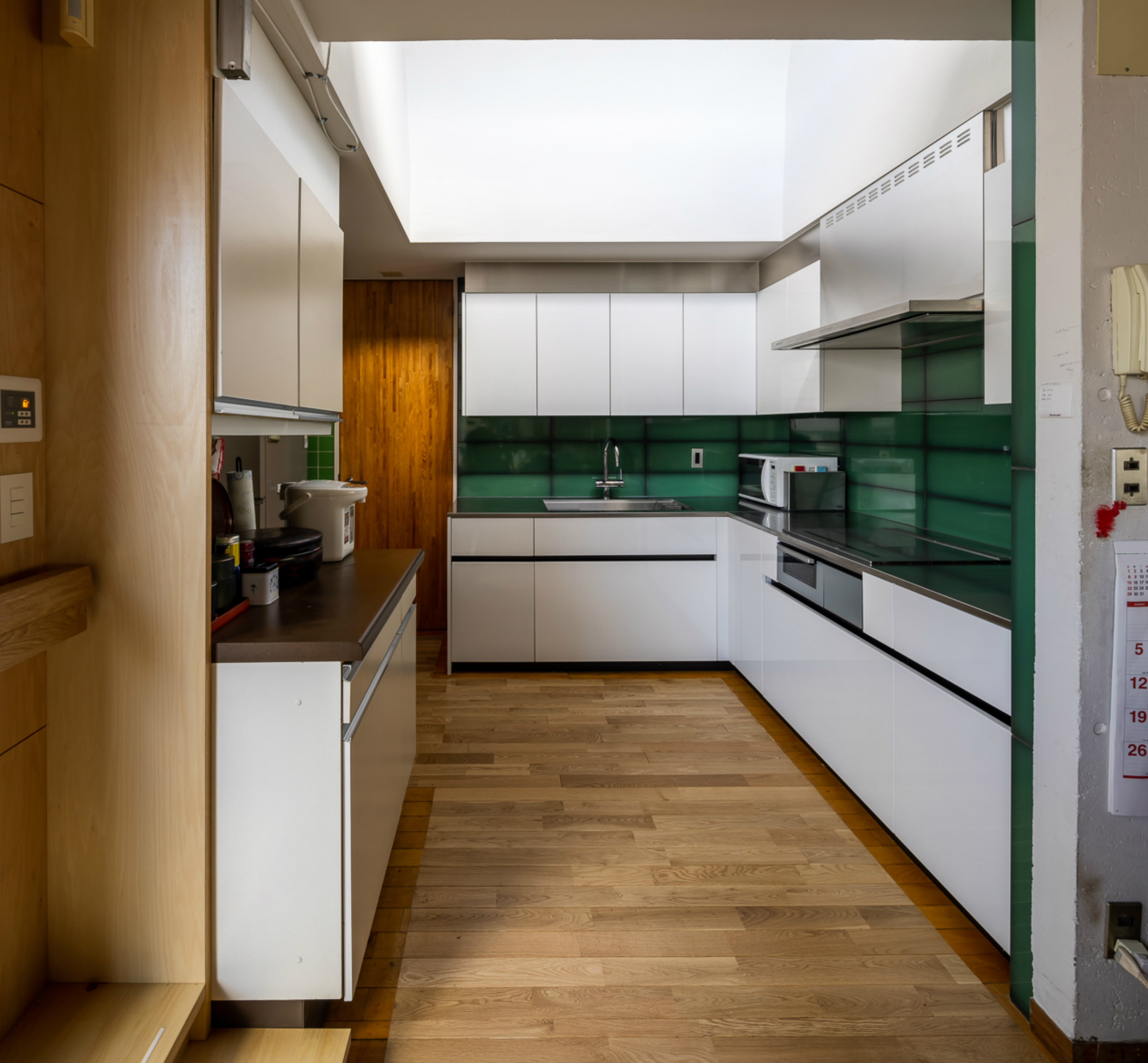 写真上:かつての入院病床を改装した子世帯のダイニング・キッチン