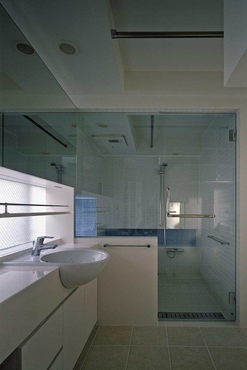 写真:工場街の家/夜景(左)喜久井町の家/浴室(右)
