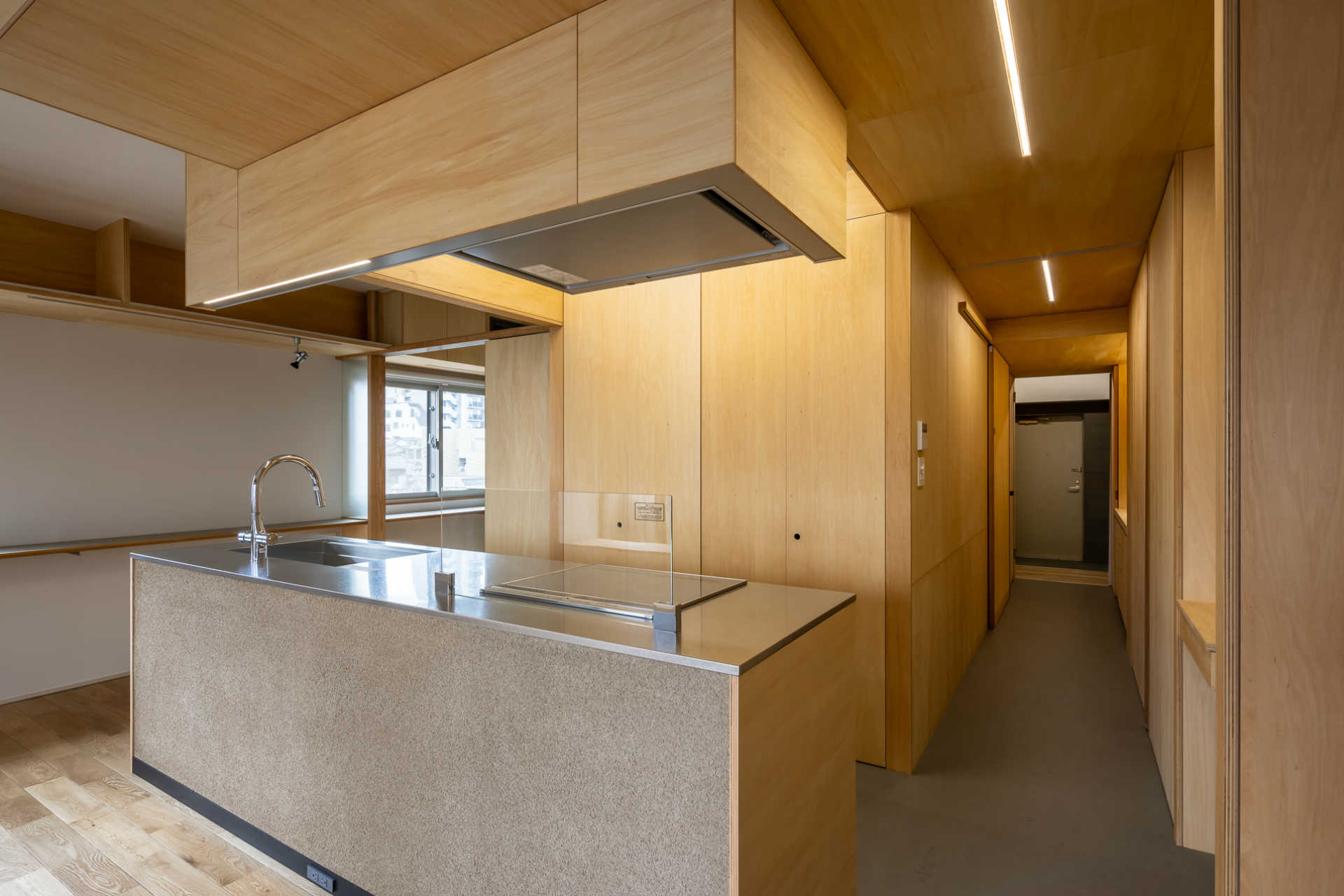 〈生活動線〉から玄関を見通す