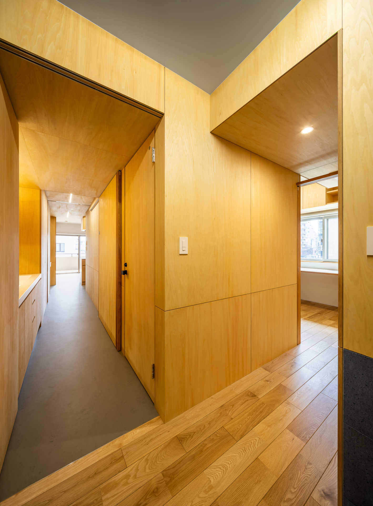 写真左:玄関に入ると二方向の動線が現れる