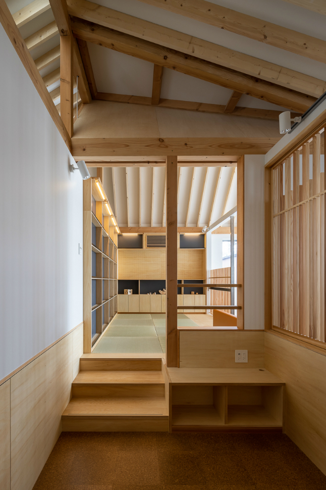左:デスク側から土間通路を見る。右:チャイルドスペースの内観