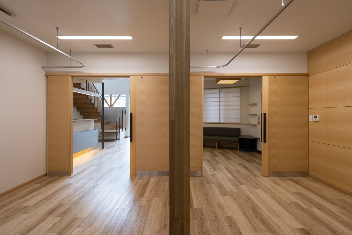 診察室1・2を見る。木の壁側に診察デスクが置かれる