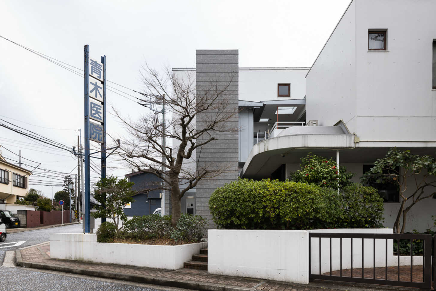 EV棟側面。診療所は敷地面積約720㎡の角地で、街並に開けた場所にある