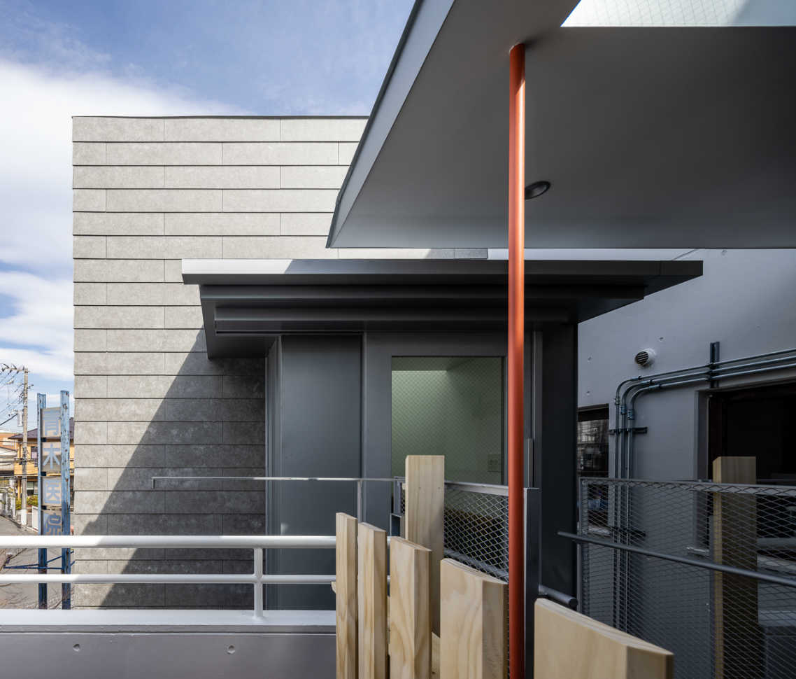 EV棟は、構造的に母屋から自立していて、手前の庇は既存母屋に固定されている